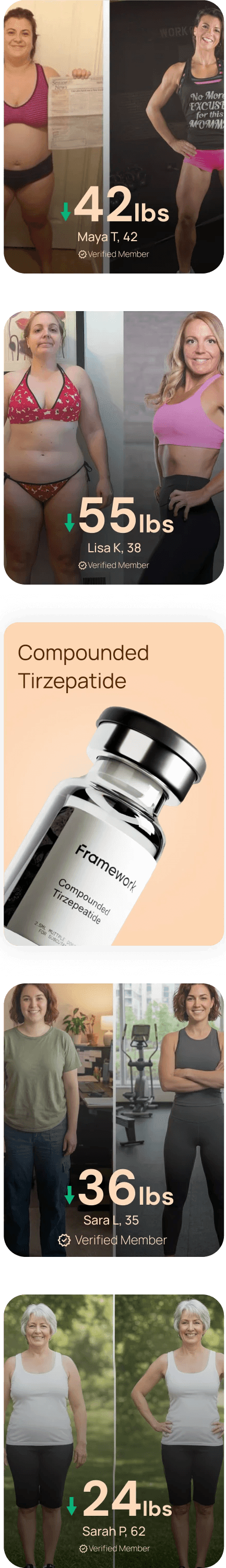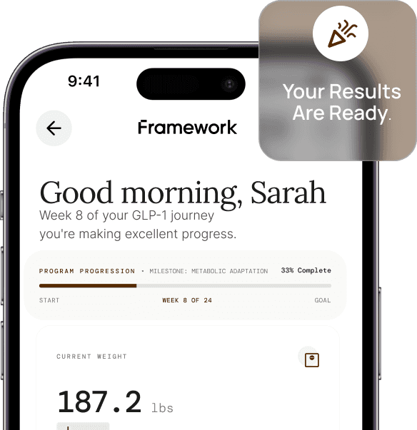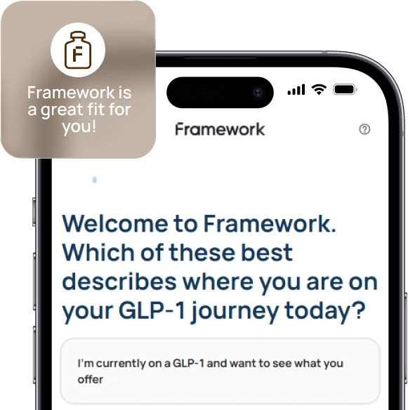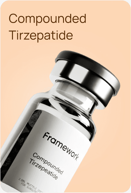 The products offered by Framework are compounded medications prepared by licensed compounding pharmacies. These formulations are not approved by the U.S. Food and Drug Administration (FDA) and have not undergone clinical trials to evaluate their safety, efficacy, or therapeutic equivalence to any FDA-approved medications. They are not intended to diagnose, treat, cure, or prevent any disease and are not substitutes for FDA-approved medications such as MOUNJARO®, ZEPBOUND™, Wegovy®, or Ozempic®. Any claims regarding effectiveness, safety, or weight loss benefits relate only to general mechanisms of the active ingredients (e.g., tirzepatide or semaglutide) and do not pertain to Framework’s specific compounded formulations. These products are not approved for cosmetic weight loss and should only be used under the supervision of a licensed healthcare provider. By purchasing or using these products, you acknowledge and accept these terms.